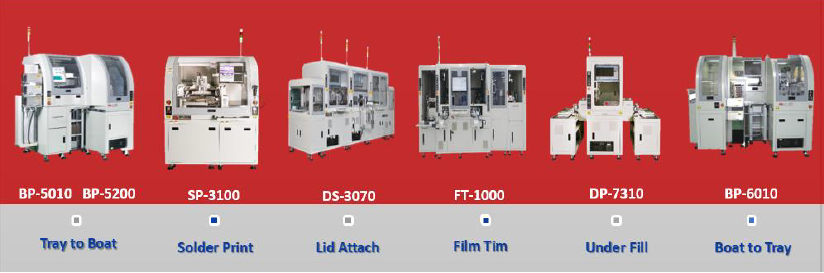 概要 台湾HTAの装置を販売・仲介致します。 HTA社は High PerformanceのフィリップチップパッケージのTIMの組み立て装置では既に世界市場を席捲しています。 その他、半導体最終工程のパッケージ外観検査の装置において 現在市場拡大しています。
